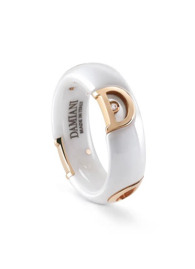 Dinámica, moderna y glamurosa: la Mujer D.Icon tiene un estilo que la distingue de cualquier otra. Adora la ciudad donde vive, pero el deseo de descubrir nuevas cosas, su curiosidad, le lleva a viajar por el mundo. Nunca sin sus joyas D.Icon, un resultado más de la maestría en el arte de la orfebrería de los artesanos de Valenza; el encuentro más poético entre cerámica, oro y diamantes en una colección propuesta en colores blanco, negro, azul celeste, capuchino y rosa pálido. Su diseño elegante interpreta en clave moderna la D de Damiani en oro blanco y en oro rosa embellecida con un diamante y, en la versión con pavé, con diamantes talla brillante. Se pueden combinar los diversos tonos de cerámica, haciendo que cada mujer pueda tener su propio estilo único y original.