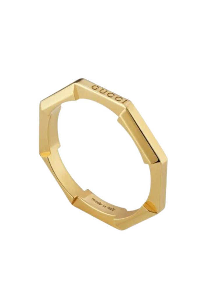 La colección Link to Love de Gucci es una exploración del romance moderno que caracteriza a los nuevos símbolos del amor. La colección combina diferentes tonos de oro y una mezcla de acabados que fusionan las líneas entre lo masculino y lo femenino. Cada pieza está pensada para inspirar formas individualizadas de llevarlas con elementos apilables y en capas. Este anillo de oro amarillo de 18 quilates con efecto espejo tiene un mecanismo apilable